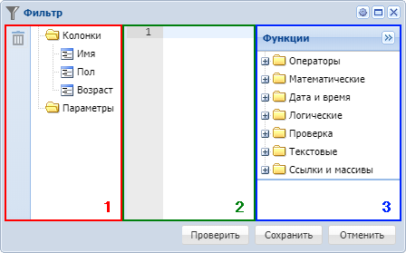 - Для проверки правильности формулы фильтра нажмите кнопку Проверить, при наличии ошибок будет выведено сообщение о них.