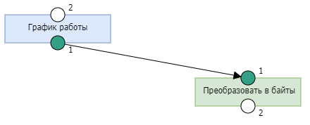 Для этого добавим узел Преобразовать в байты и соединим его входной порт с выходным портом узла "График работы".