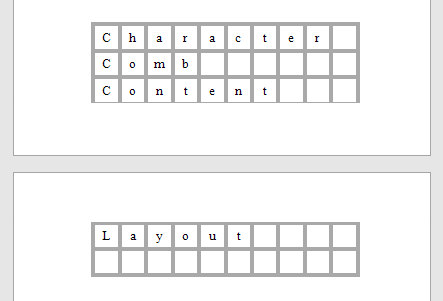 Элемент управления Текст в ячейках отображает текст таким образом, что каждый символ печатается в отдельной ячейке.